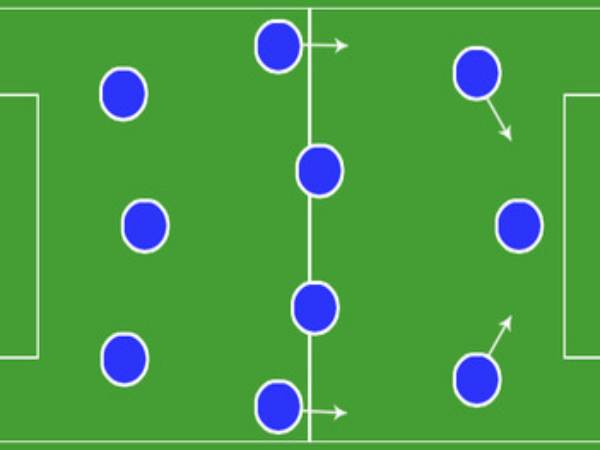 Hai tiền vệ cánh có thể dâng cao, tạt bóng vào trong hoặc phối hợp với các tiền đạo lệch cánh, tạo cơ hội ghi bàn đa dạng và gây khó khăn cho đối thủ. Đồng thời, tiền vệ cánh còn có thể thu hồi bóng nhanh, hỗ trợ trung vệ khi bị phản công.